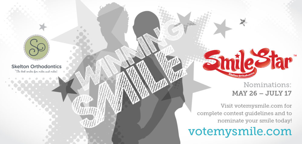 The Skelton Orthodontics team is looking for patients to represent our practice on our advertising and marketing! Beginning May 26, we will be accepting nominations from Skelton Orthodontics patients to be selected as a SmileStar! You qualify for this contest as long as you are or have been a Skelton Orthodontics patient. We are looking for patients in and out of braces and of all ages! Here is the process: 1. Nominate your smile 2. Top 30 are selected by a panel of judges 3. Voting begins for all Top 30 contestants 4. Winners who have the most votes are announced As a SmileStar winner, you have the honor of being a “face” of Skelton Orthodontics and will be treated to a professional photo shoot. The pictures taken at the shoot will be featured in our advertising and marketing! How? It’s easy! Just click on http://votemysmile.com/skelton-braces/ (the form will not be available until May 26 at 8:00 am), fill out the info, and upload two pictures. Feel free to contact Ryan at the office with any questions! So, plan to nominate your smile on May 26th! Nominations end on July 17th!